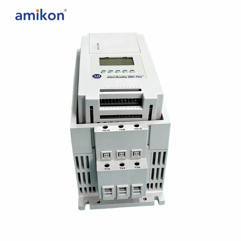 The 150-F5NBDB controller is an solid-state Smart Motor Controller (SMC) or small soft starter with a current rating of 5 Amps and 3 Horsepower of output power. The operating voltage of this device is 460 Volts AC. By using this smart motor controller, small motor control application systems can be upgraded from older electromechanical motor starting systems composed of circuit breakers, contactors, and overload relays to new motion control starting systems composed of just circuit breakers and soft starters. The 150-F5NBDB Smart Motor Controller provides the motor circuit activation function of a normal contactor and combines it with several other current limiting and energy-saving capabilities that are not available in older devices.