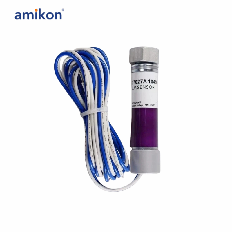 The C7027A1049 is a Honeywell Minipeeper Ultraviolet (UV) Flame Detector, a compact sensor used in industrial burners (gas, oil, coal) to monitor flame presence by detecting UV radiation, connecting to flame safeguard controls, mounting on a 1/2" sighting pipe, and handling pressures up to 5 psi. Key features include its small size for blast tube mounting, stainless steel housing, 0-215°F operating range, and ability to be wired in parallel for difficult sighting.