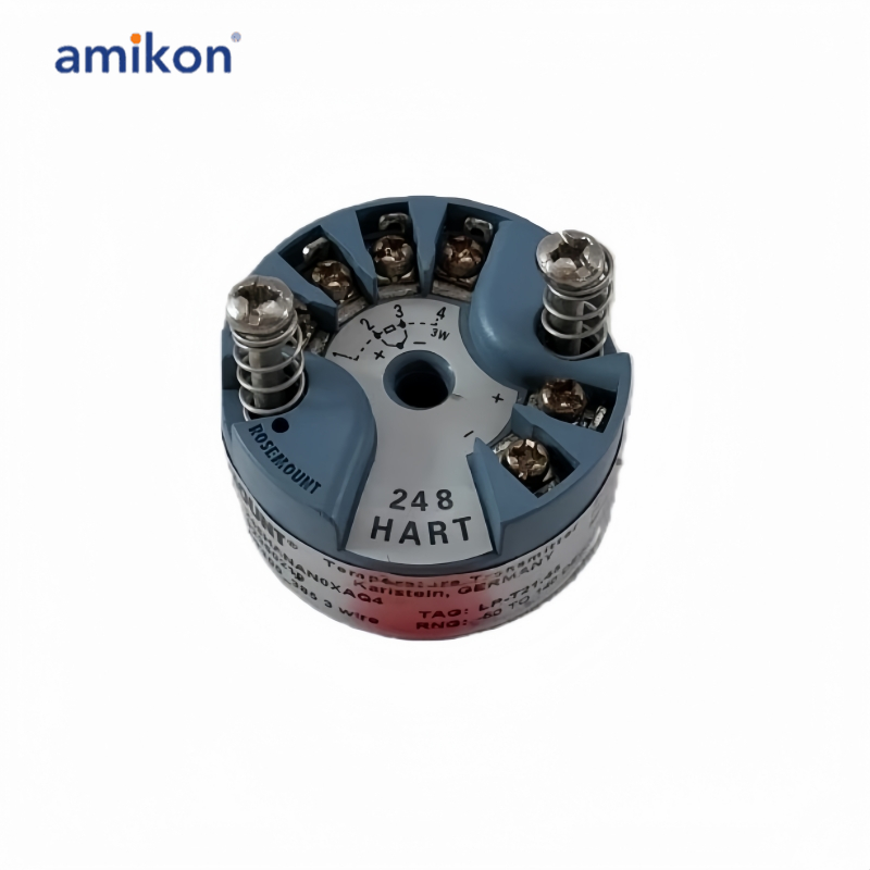 The Rosemount 248HANAN0 Temperature Transmitter is a high-performance, head-mount transmitter designed for accurate and reliable temperature measurement in industrial applications. Built to withstand harsh operating environments, it converts RTD or thermocouple input signals into a stable and standardized 4–20 mA output.